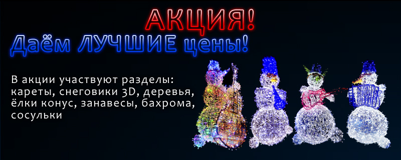 Световая фигура 3D "Снеговик с Контрабасом" высота 1.6м